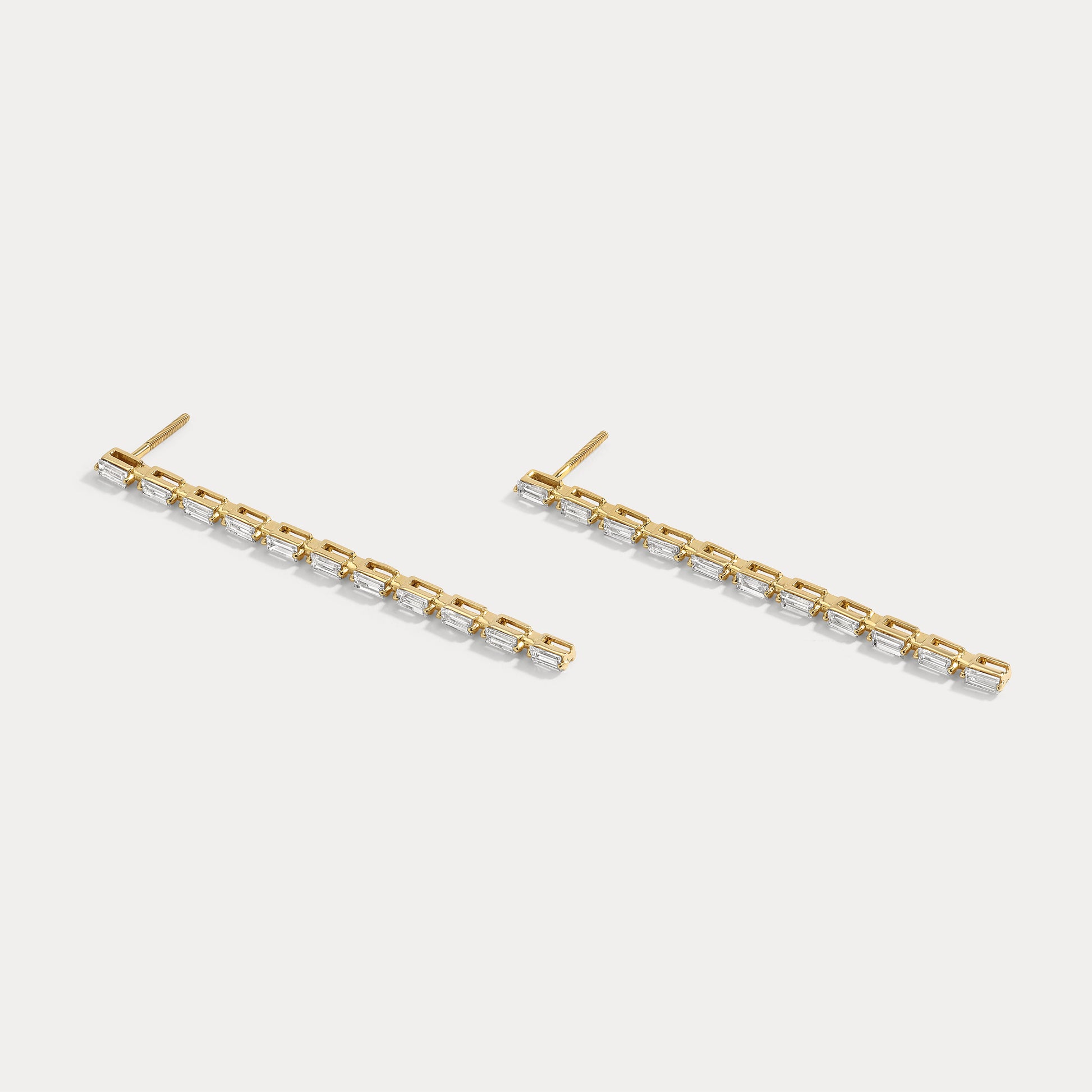 Stunning drop line earrings, each featuring 11 baguette diamonds.